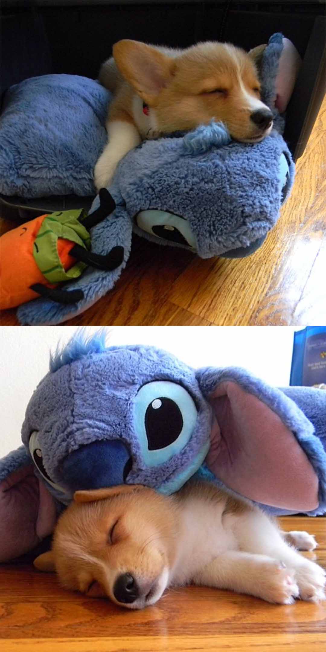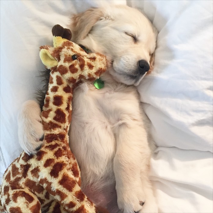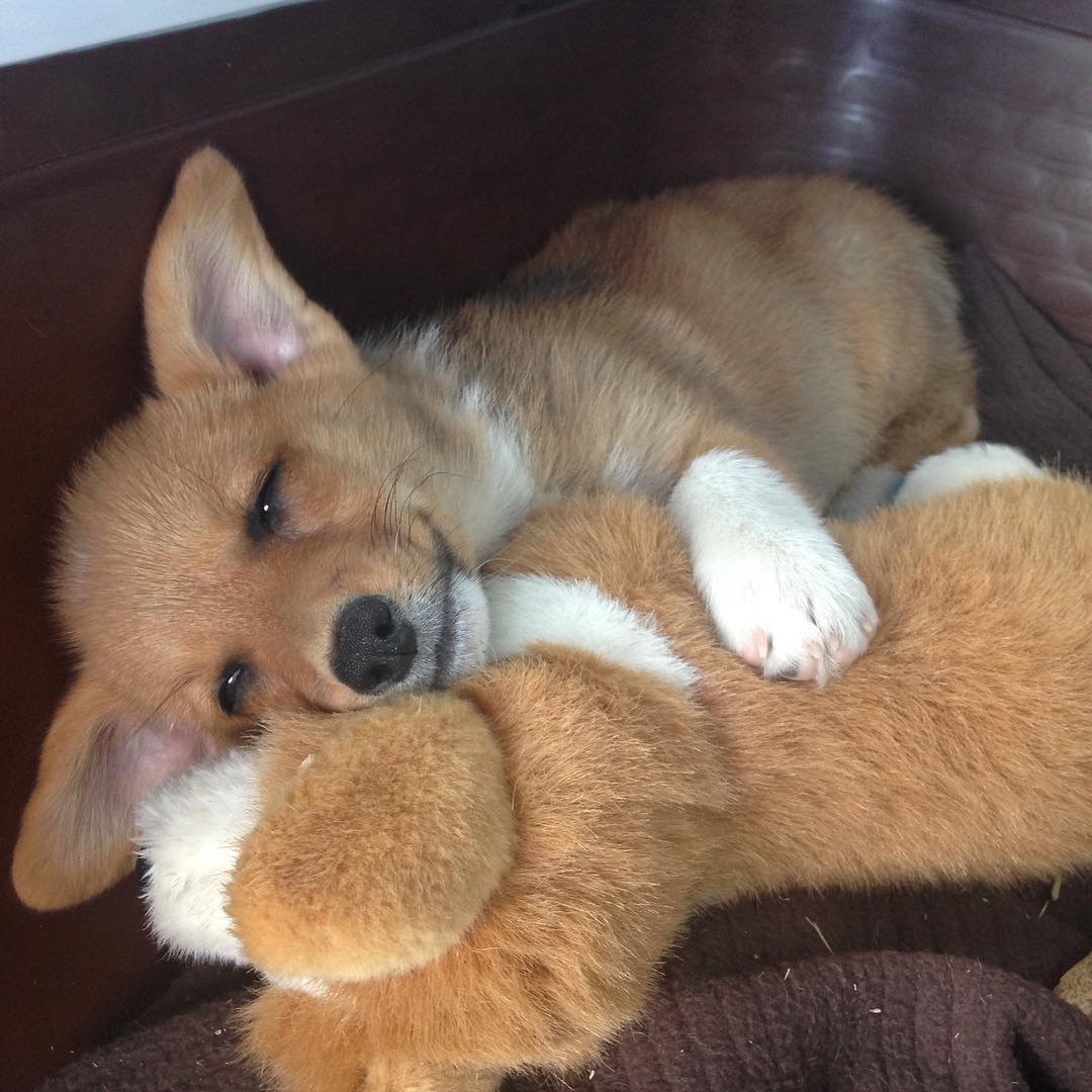 睡覺也喜歡抱抱~ 小奶汪們「緊摟娃娃」超療癒 還要陪著一起長大❤
