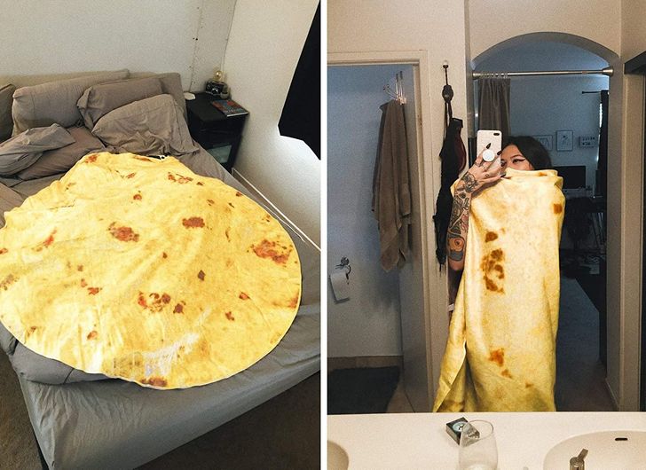 ▼1.吃貨最愛的毯子,將捲餅蓋在身上。