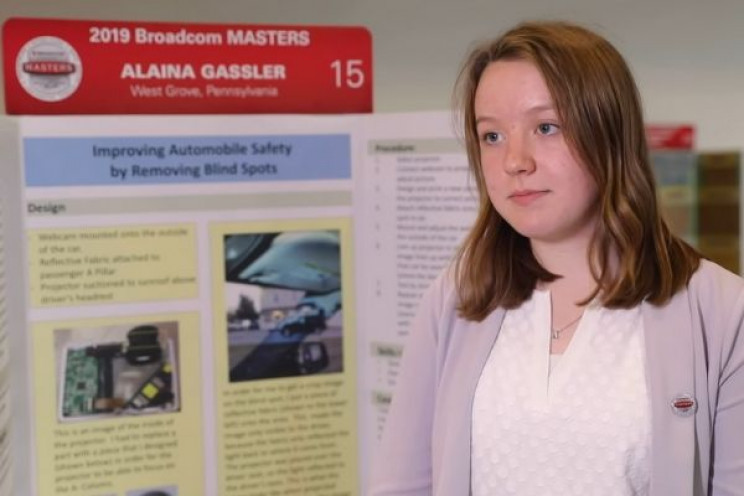 ▼來自美國賓州的14歲天才美少女艾蘭娜(Alaina Gassler)想出了一個創新的方式,解決開車時因為汽車A柱所造成的視線被阻擋問題。