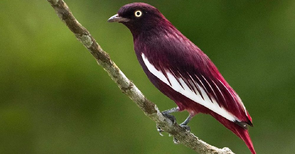 2020年07月24日羽毛顏色多種多樣的鳥類非常漂亮,其實單色羽毛的鳥類也很美。生活在亞馬遜熱帶雨林中的白翅紫傘鳥(Pompadour cotinga),就因一身酒紅色的羽毛讓人驚艷。除了翅膀上的白色羽毛,牠們全身都是酒紅色的,在不同的光線下還能展現出不同的紅色,這是大自然賦予牠們的唯美外衣。