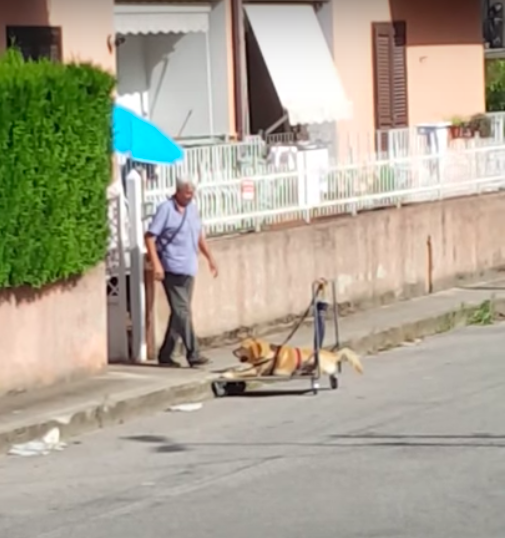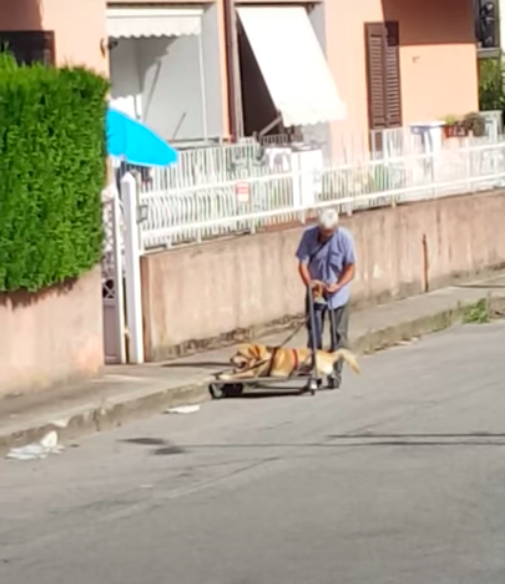 2020年07月25日狗狗對主人的愛永遠不會變,但很多狗狗會因為「太老」被趕出家門。幸好並不是所有的主人都那麼狠心,還是有人願意好好照顧老狗,將牠們當成真正的家人和朋友。義大利老人Tonino Vitale養了一隻叫Dylan的狗狗,Dylan已經13歲,因為年齡太大行動不便,但Tonino還是會每天帶牠出門散步。