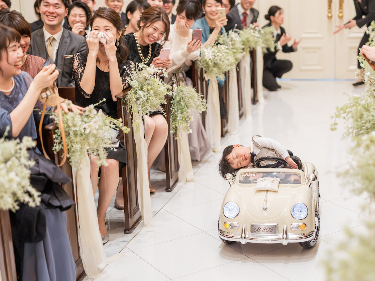 2020年07月24日大家對於去參加的婚禮典禮上,最有印象的一幕會是什麼呢?是新郎從新娘爸爸手中接過新娘嗎?還是新人們互相交換誓言的儀式呢?不管哪一段,相信一定都是滿滿的「感人」元素吧!結婚典禮上通常也少不了萌萌小花童,在這些稚氣可愛的小天使點綴下,讓整場婚禮襯托得更完整圓滿。但是在日本有一場婚禮,一位小花童疑似因為前一天沒睡飽,在領新人入場的遙控車上直接大睡特睡了起來,笑翻了來場的賓客們。