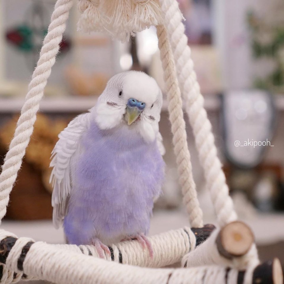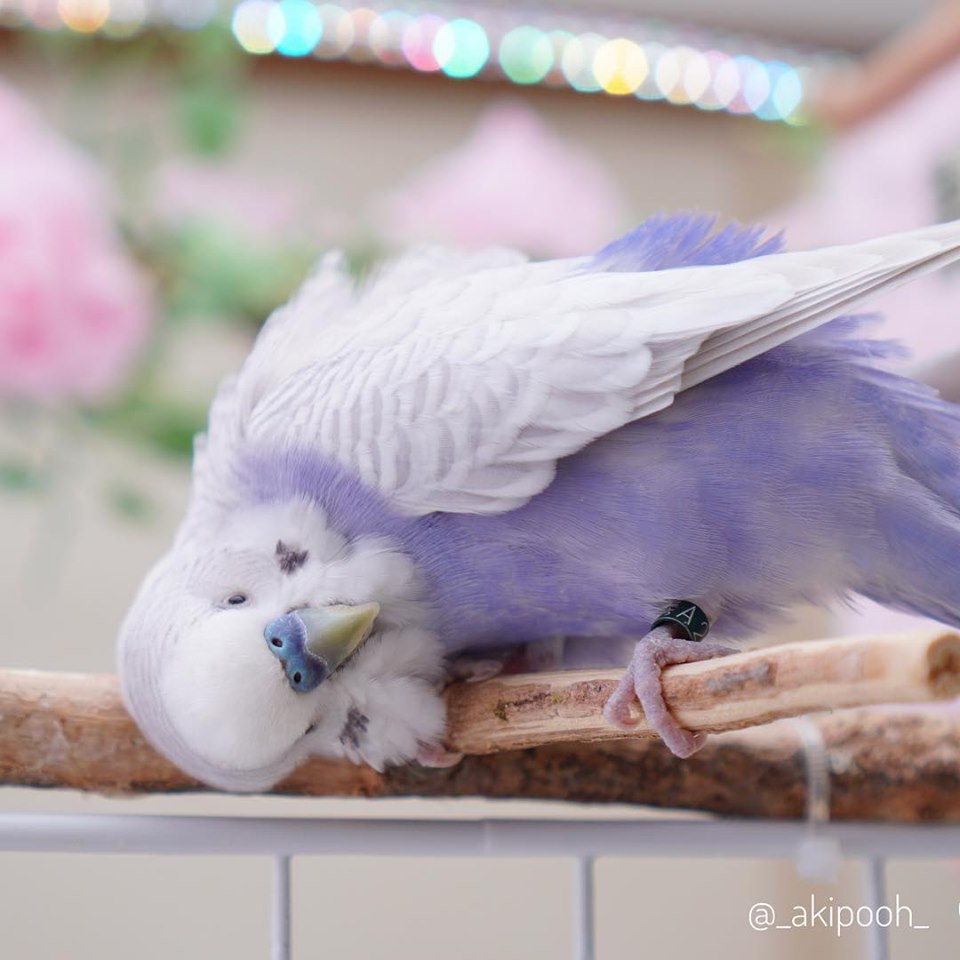 ▼這名網友(@_akipooh_)飼養了兩隻超漂亮的淡紫色「虎皮鸚鵡」,名字分別叫 Lilulu 和Layla。