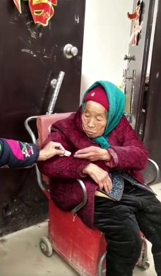▼下一秒手裡就拿著一顆糖果,然後還給了旁邊的84歲女兒。女兒看到糖果時還來不及反應,一臉懵…