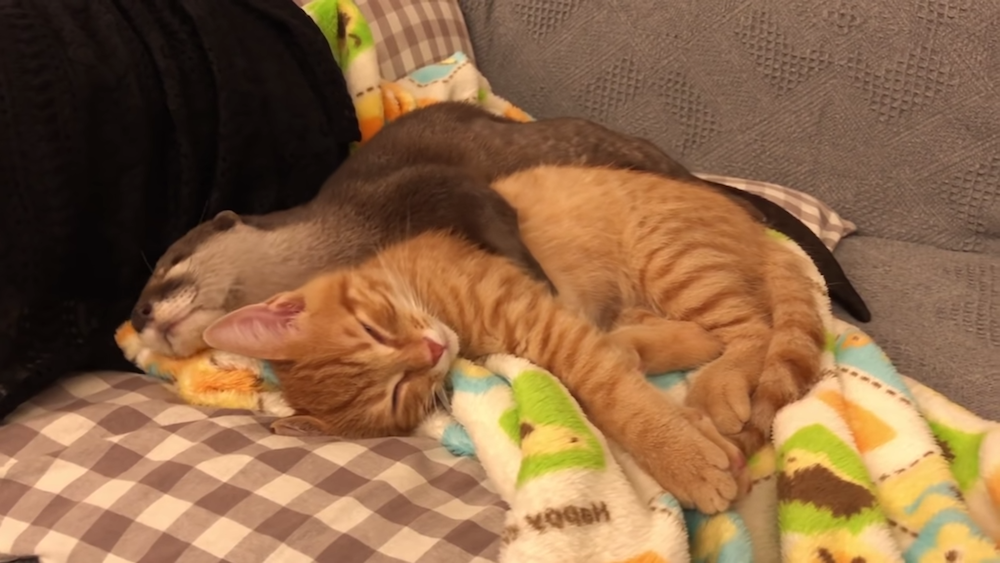 你就是偶的枕頭~ 貓咪和水獺的「黏TT日常」 喵皇任由「抱著睡」畫面太溫馨