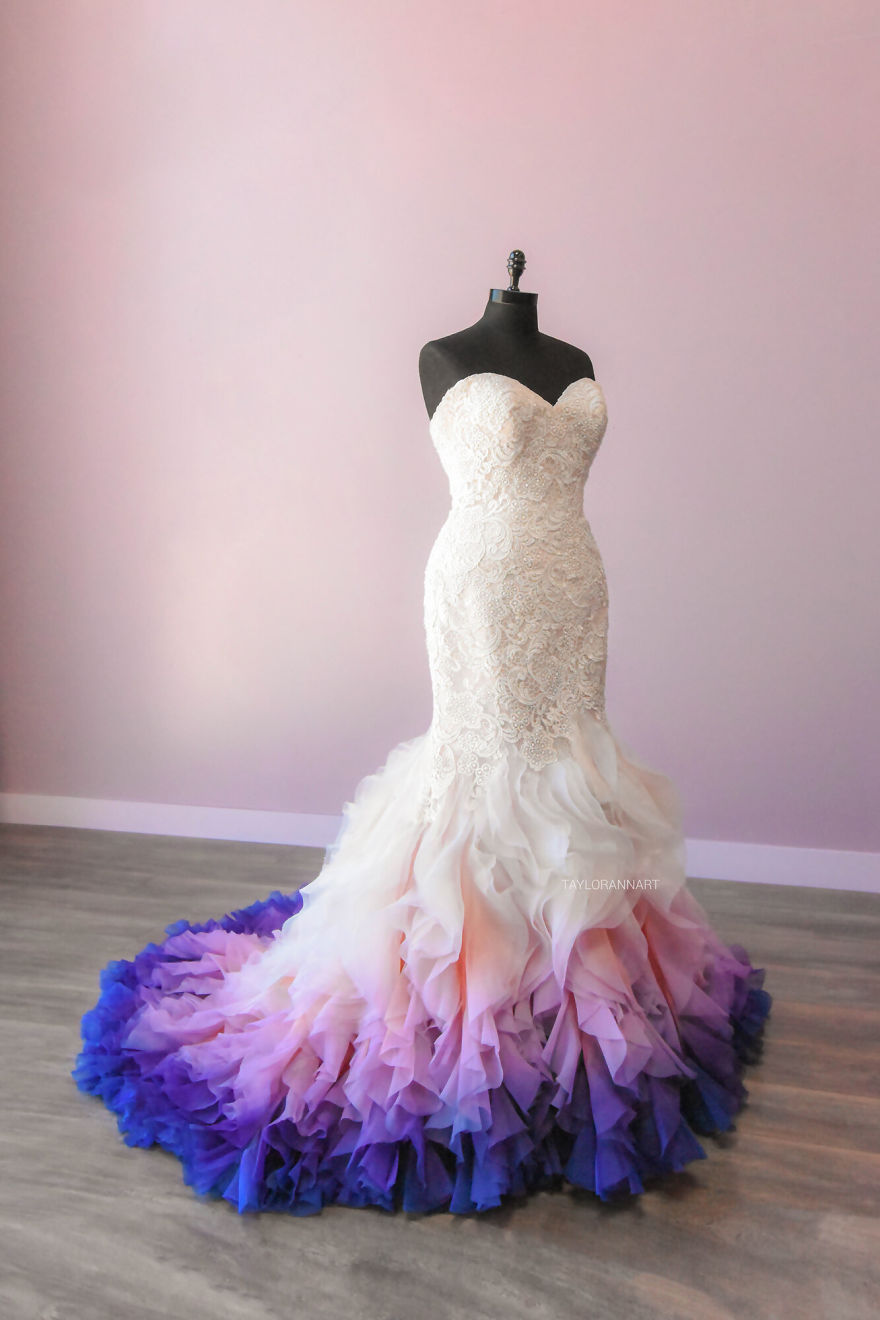 ▼婚禮前一週,Taylor的婚紗改造完成了!婚紗裙擺處漸層暈染的顏色就像火焰一般美麗。她還特別搭配了頭髮顏色,準備了跟婚紗同色系的捧花。婚禮上她出場時所有賓客都眼前一亮!