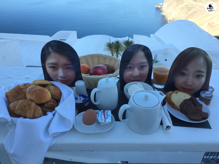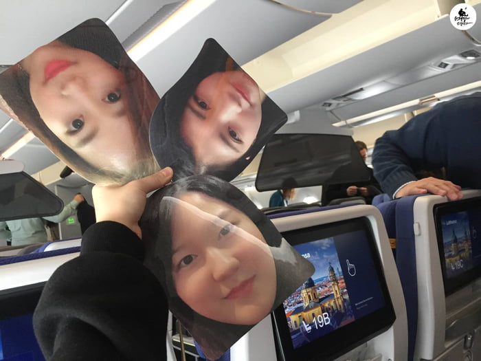 ▼Soo Yeon將閨蜜們的大頭照印出來,從搭飛機開始就帶在身上。雖然閨蜜們不能跟她同行,但有照片陪伴,就像她們也在身邊一樣。她把照片當成真身,拍了很多出遊照,po到網路上後引起了網友們的關注。