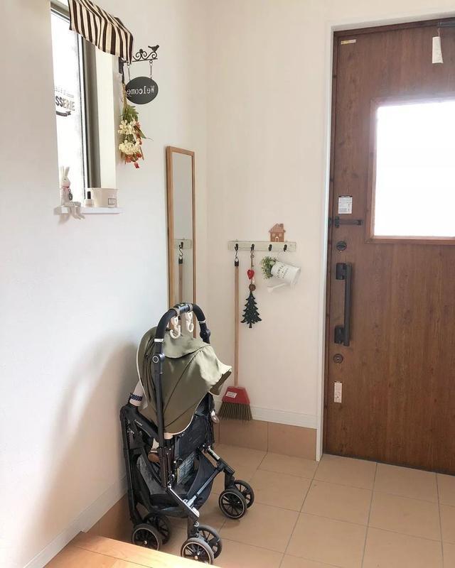 ▼這就是他們的家,玄關非常簡單,只在牆上裝了一個全身鏡,還有一排掛鉤。不佔空間,又能放置雜物。