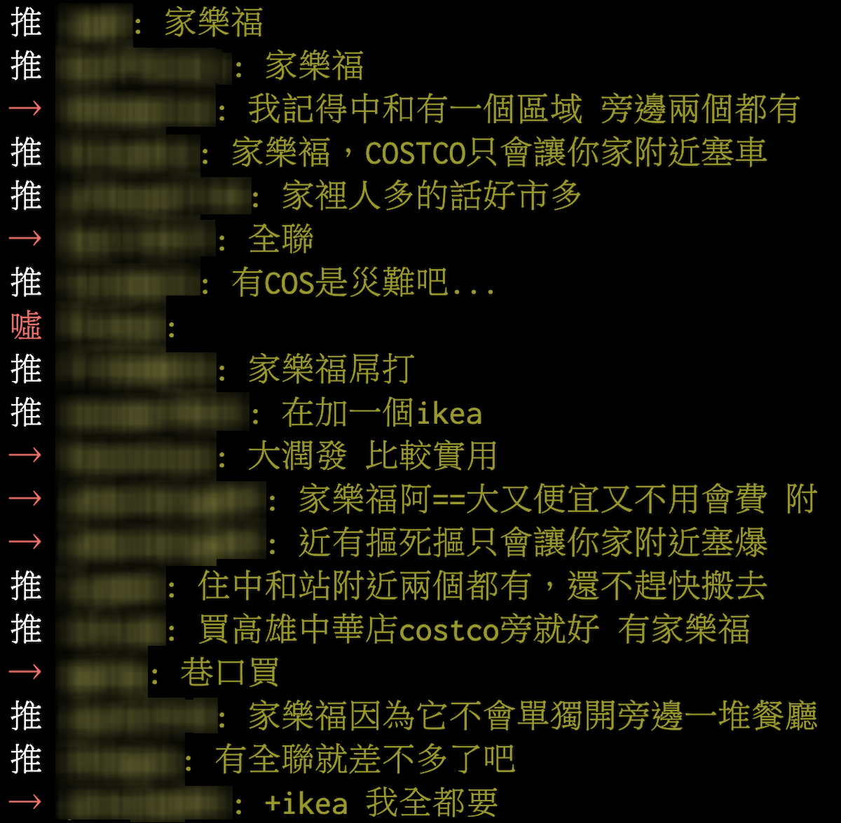 ▼許多網友回應表示,「家樂福,好市多的份量太多了」、「絕對是家樂福啊,好市多附近交通經常不通暢」、「家樂福通常生活機能比較好」、「家樂福買東西很快,好市多要買多久」、「好市多的份量不適合一個人吃,太多」。
