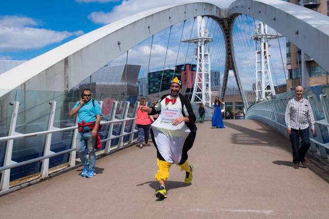 2020年08月04日今年41歲的Brendan Rendall住在英國曼徹斯特(Manchester),他超喜歡跑步,6月份每天都要跑一趟半馬。他經常從凌晨4點開始跑步,在工作前跑完18英里(約29公里),然後再抽時間跑完剩下的部分。這段期間他偶然看到「切斯特動物園」(Chester Zoo)進入財務困境,園方在向公眾募款,於是決定進行「跑步募資活動」,穿著動物服裝跑31場馬拉松為動物園募款!