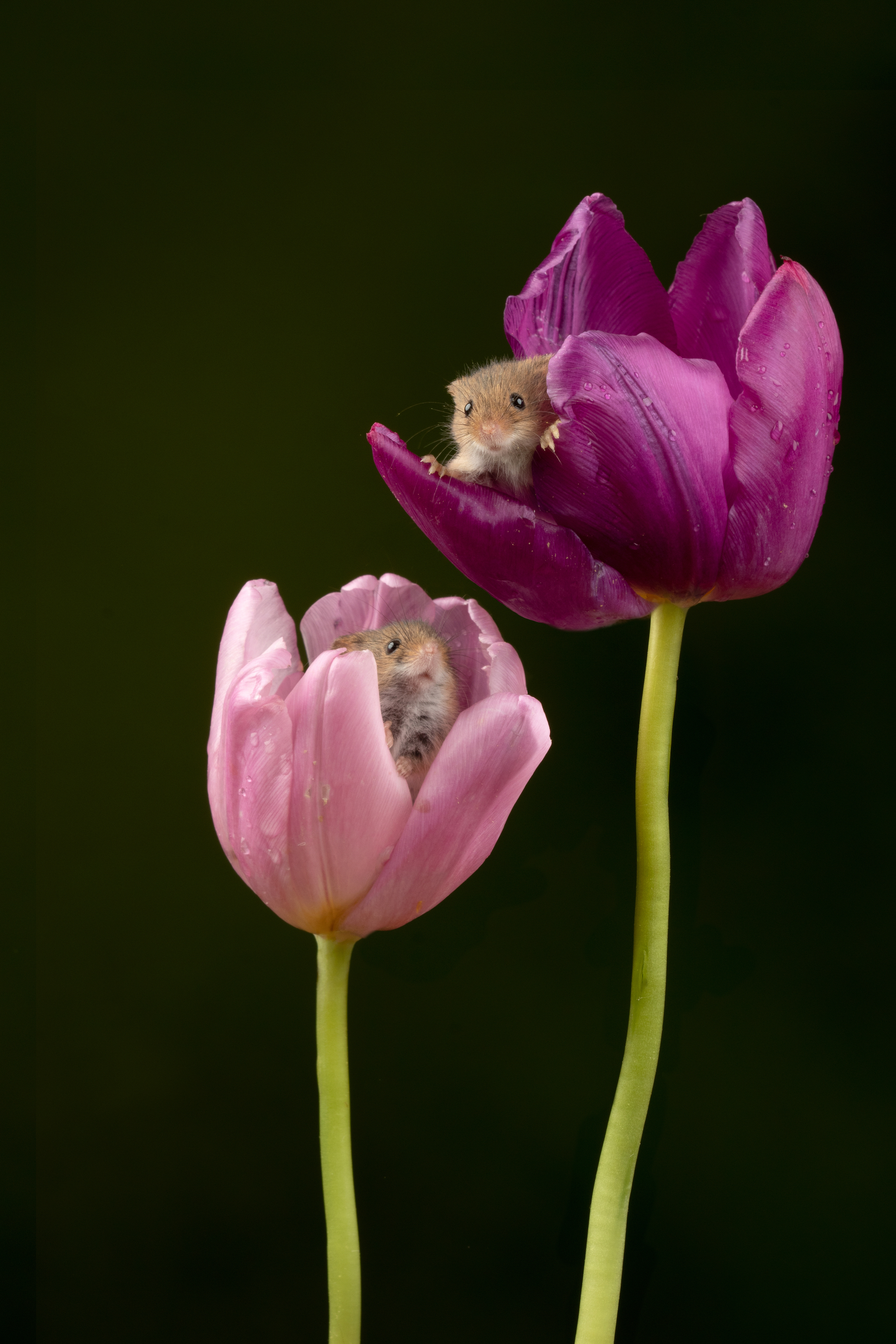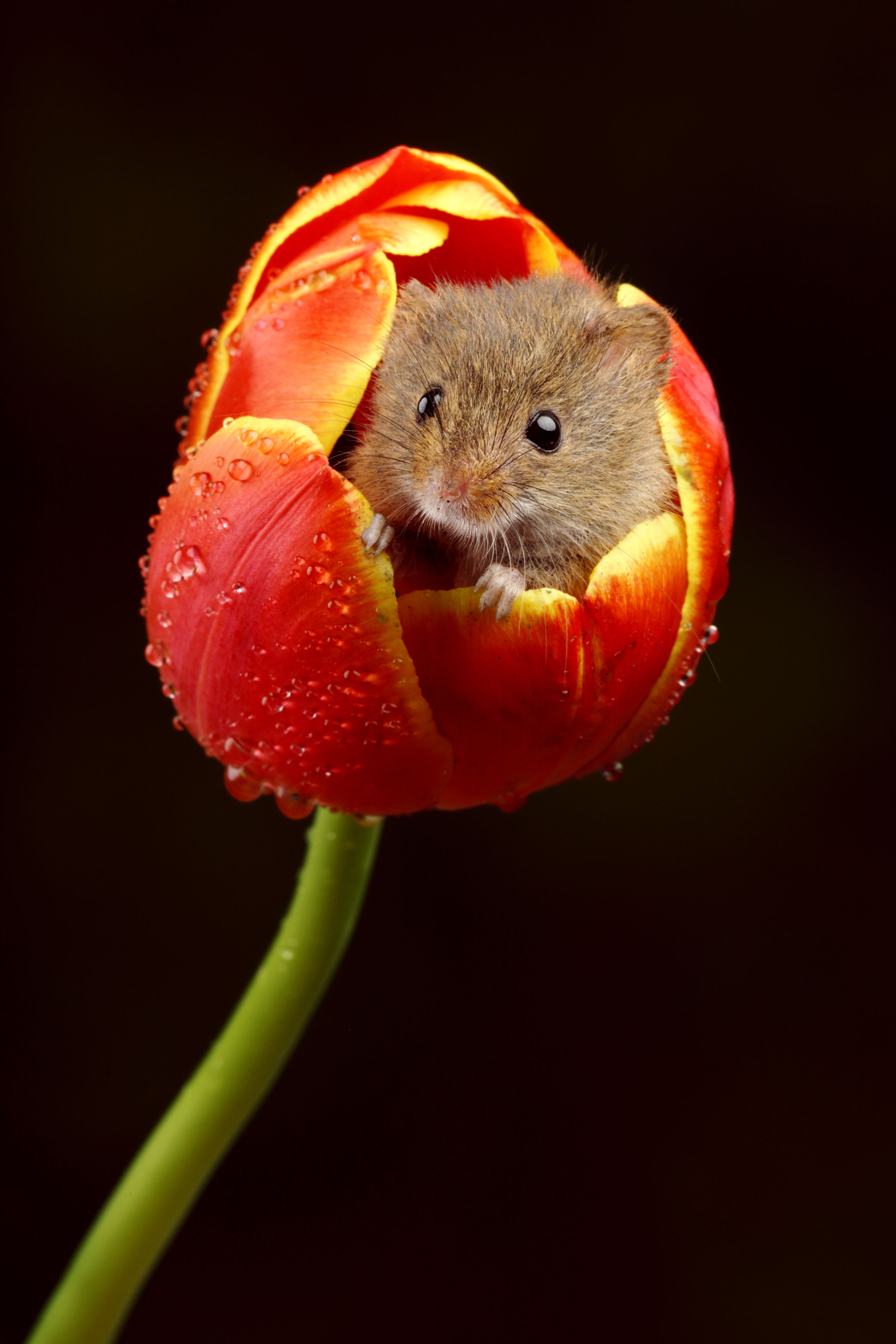 小鼠窩在鬱金香花苞中的畫面超療癒,看到這一系列可愛的照片,不管度過了多麼糟糕的一天都會心情開朗起來吧~