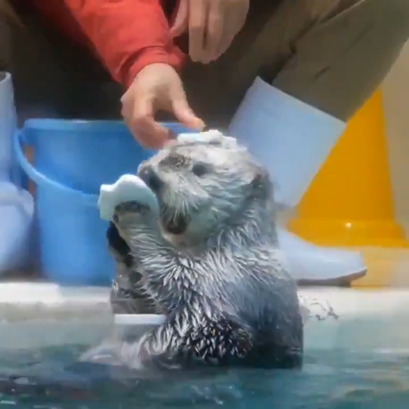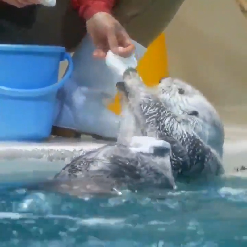 2020年08月06日海獺太可愛了!日本推主@marshmallow_57非常喜歡海獺和小貓熊,經常會去動物園、水族館參觀。不久前他去鳥羽水族館,正好看到飼育員在給海獺「Mei」(メイ)送小貝貝。Mei很珍惜這些小禮物,牠一一收集起來,最後的做法卻出乎所有人的意料,大家都被萌翻了。