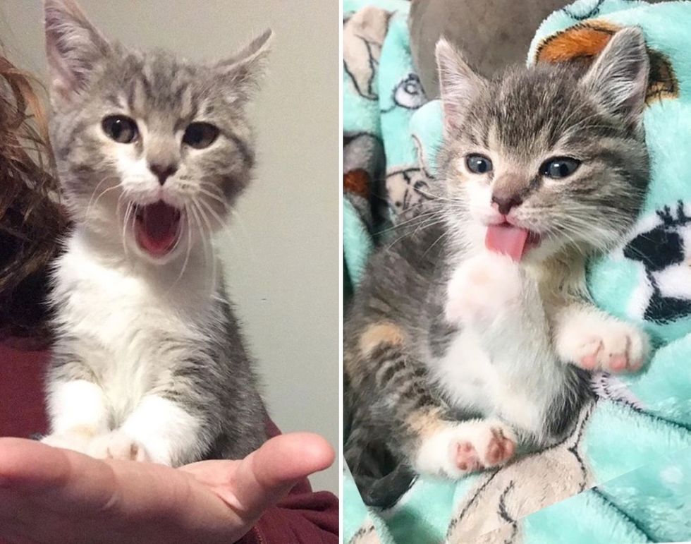 2020年08月07日聰明的貓咪會自己選奴才~美國印第安納州(Indiana)夫婦Claire和Kyle在農場中整理穀倉時,突然聽到輕柔的貓叫聲。只見一隻小奶貓從隱蔽的角落跑出來,跟在他們身後叫個不停。小貓年紀太小,走路都顫顫巍巍的,讓人忍不住心生憐惜。他們確定母貓不願意撫養這隻小貓後,決定將牠帶回家。