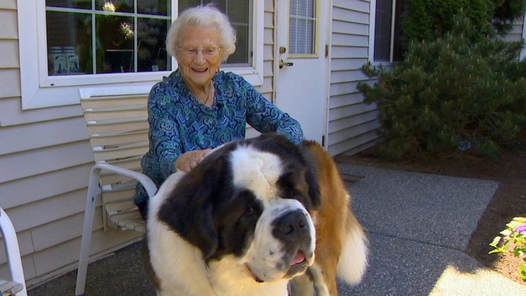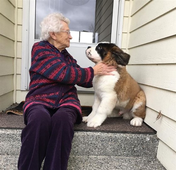阿嬤我來吃零食~ 聖伯納一眼愛上「95歲獨居嬤」 天天來拜訪:像多了個孫子❤
