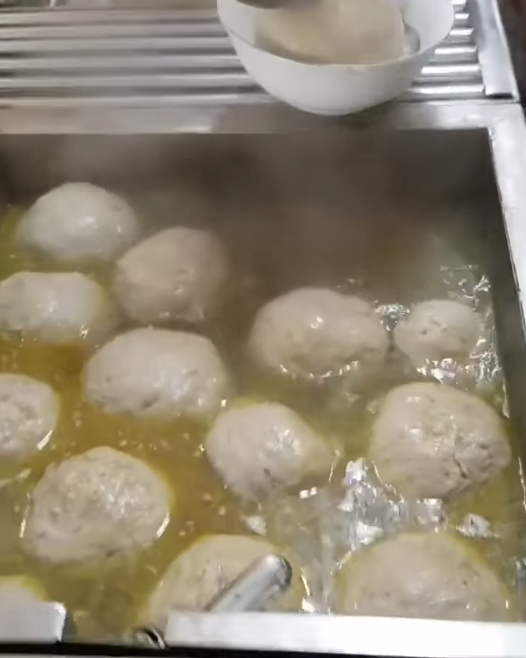 ▼網友看到也都感到相當驚訝,也有許多人表示「求地址」,顯得很想要嘗嘗看味道,也有人好奇這樣裡面會煮得熟嗎?後來有網友好心揭曉答案,原來是這一道印尼當地的菜餚,叫做「Bakso」,要搭配麵一起吃,吃起來的口感其實就和貢丸差不多,但是它超級巨大的體積顯得很特別,讓網友紛紛笑說,「這是阿嬤養的貢丸」、「足球丸」、「吃一顆就飽了」。