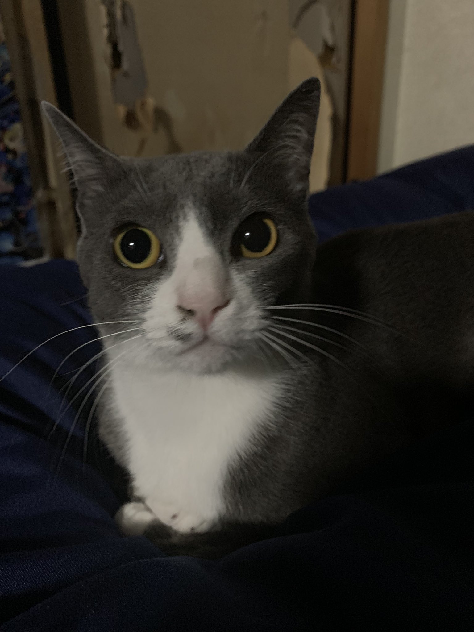 ▼而撞臉的就是這隻喵!推特網友「monikimp」特地把牠跟日本當紅扭蛋「工事貓」玩偶擺在一起,讓大家看看牠們到底長得多像!那灰中夾雜著一抹白的毛色,那犀利的眼神和有點欠揍的小嘴,真的是同一個模子刻出來的啊!
