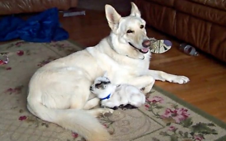 2020年08月09日跨越種族的感情非常特別。國外一名網友養了一隻叫Shadow的雪白德國牧羊犬,牠總是把其他的小動物當成自己的小孩來照顧。一隻侏儒山羊寶寶出現後,Shadow也做了同樣的事,牠化身溫柔養母,把小羊抱在懷裡保護~