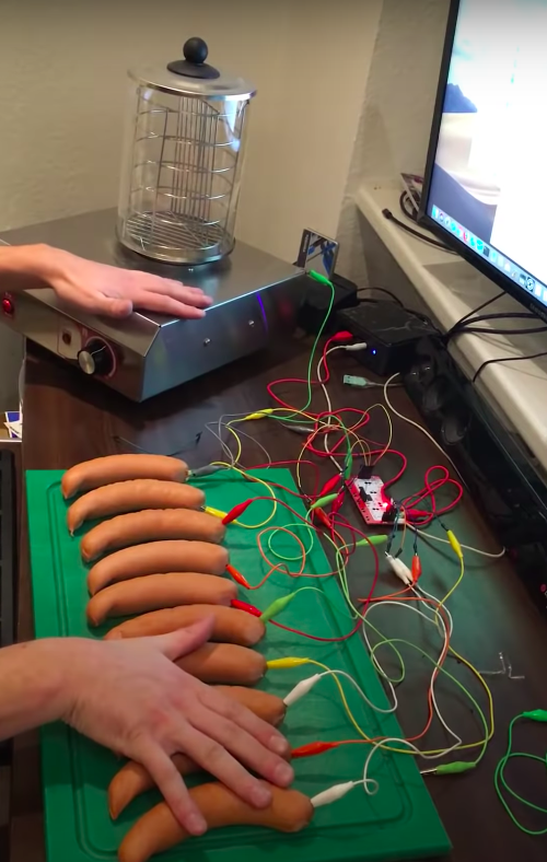 麥鬧啊! 神人浪費才華「把香腸做成鋼琴」 10根香腸變琴鍵「一碰就有聲音」:彈完再吃掉