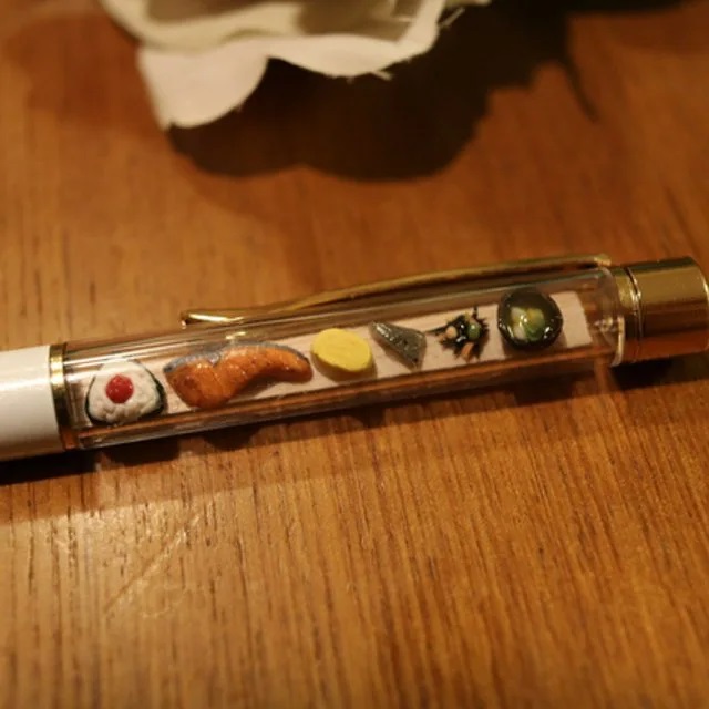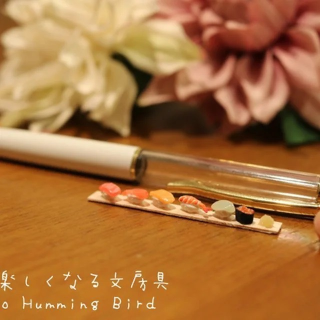 ▼令人看了就食指大動的握壽司被縮小擺進筆管裡,工作時看到這個,中午應該會很有食慾吧!