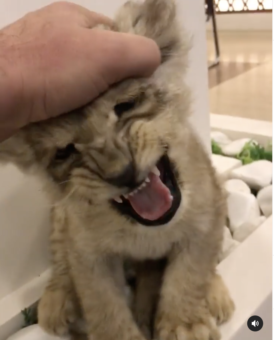 我超兇!小奶獅被摸頭想獅吼 一開口變「哇嗚哇嗚聲」奶音喊:吃掉你喔~