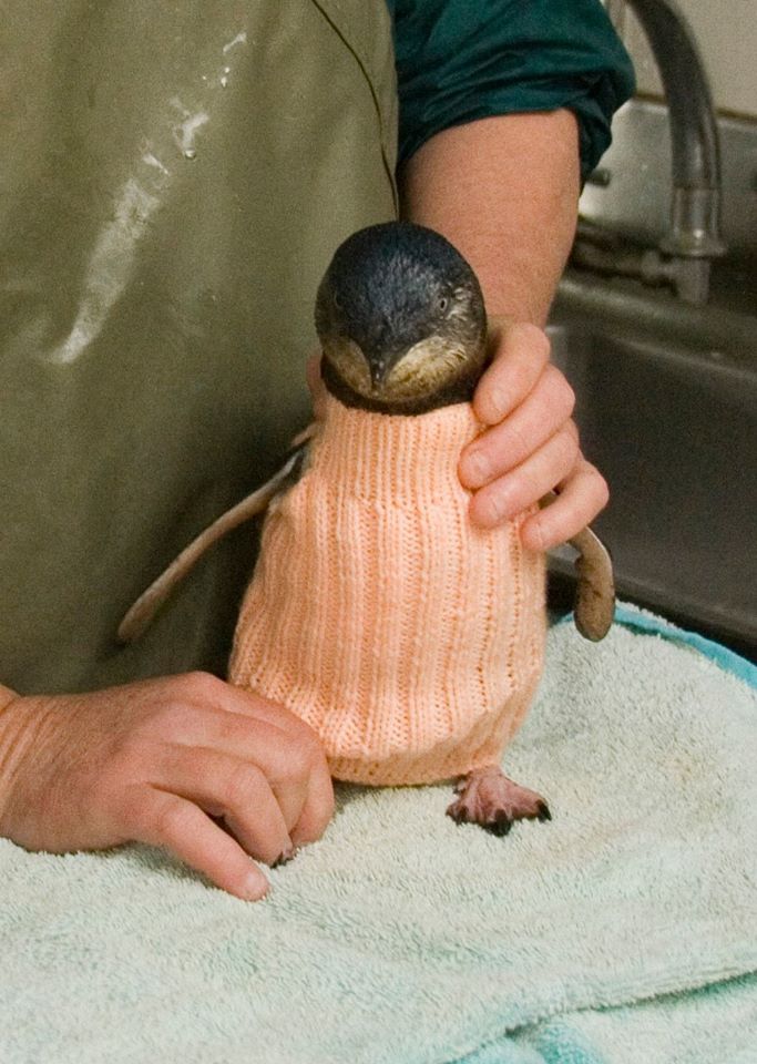 2020年08月14日澳洲菲利浦島上生活著很多小企鵝,因為石油污染,這些小企鵝正面臨著巨大的生存危機。石油沾到企鵝們身上後,牠們會基於本能用嘴巴清理,結果一部分有毒物質就進入企鵝體內。那些清理不掉的油污還會導致羽毛受損,限制小企鵝們的生存。因此「菲利浦島企鵝基金會」(The Penguin Foundation)決定給沾有油污的小企鵝套上針織杉,防止牠們舔食羽毛,並將牠們帶到診所治療。