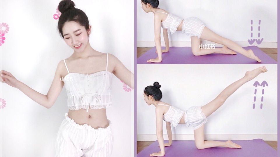 ▼芭蕾瘦腿法需要以四肢跪在瑜伽墊上,大腿膝蓋保持90度,同時收腹、抬頭,每一個動作做四個八拍。1.曲腿運動:將一隻腿的膝蓋向斜上方伸直,腳尖要有延伸感,使用大腿的力量發力。收回膝蓋時不要駝背、慢慢回到原點。這個動作能夠瘦大腿內側,甩掉屁股連接處的贅肉。