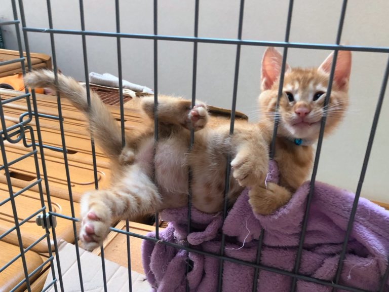 貓咪為了求關注,真是什麼事都能做出來。這隻小橘貓趴在籠子上、努力擠進縫隙裡,這可愛的模樣太療癒啦~