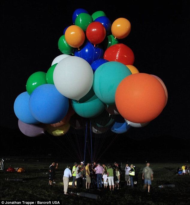 ▼直到他看到在2009年上映的《天外奇蹟》,馬上驚訝自己的妄想居然能在影片中完美呈現,於是看完電影後,他開始動了也想要做一樣事的念頭。強納森的團隊在經歷的多次的測試實驗後,確認至少需要綁上「370顆氦氣球」,這計畫才能實現。