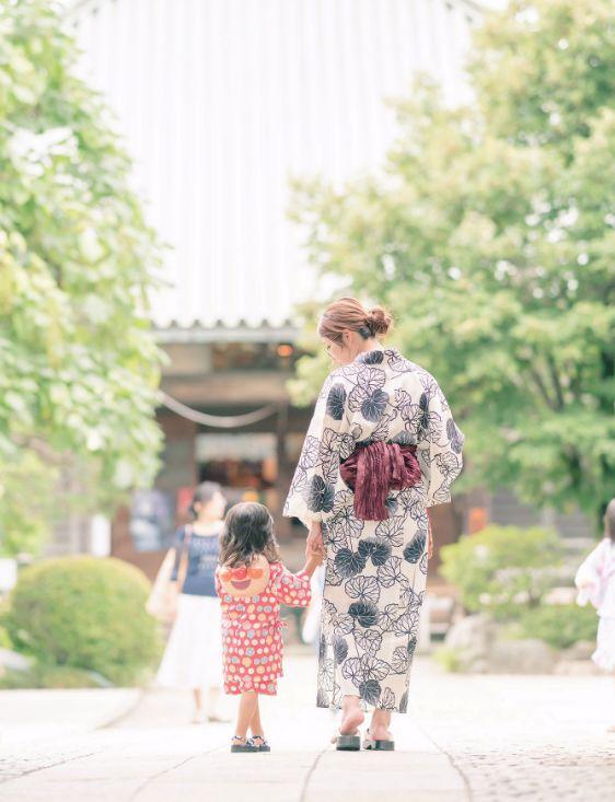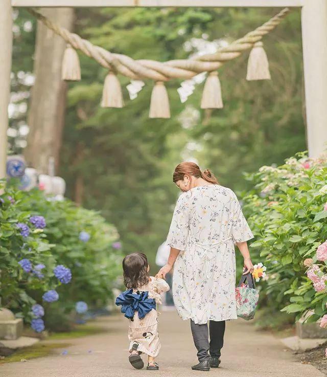 ▼媽媽穿著木屐,女兒穿著小涼鞋,她們手牽手的畫面格外溫柔:
