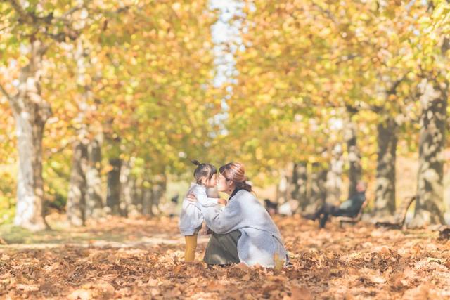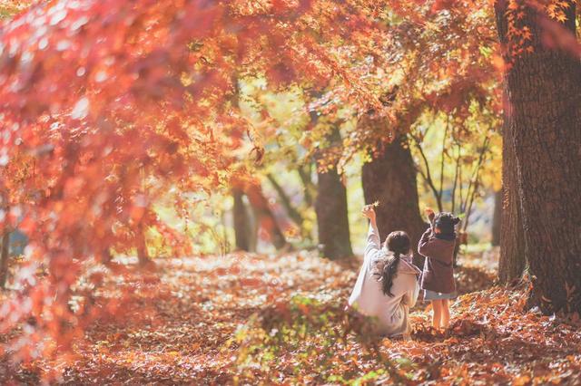 ▼秋天漫山遍野都是紅楓,母女兩人一起去賞景、一起去盪鞦韆: