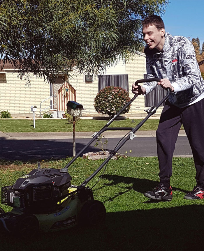 ▼自閉的兒子無論做什麼事都興致缺缺,唯獨割草能讓他臉上出現笑容!