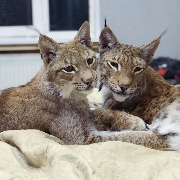 ▼Geralt和Bulochka長得非常可愛,其實很調皮。牠們經常偷吃食物,再加上小時候的生活環境不好,身體狀況並不好。Anastasia表示,照顧牠們、訓練牠們要花費較大的精力,猞猁並不是適合家養的寵物。