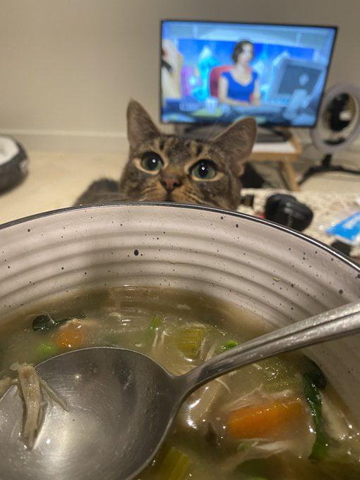 ▼推主無奈表示,她家的貓咪超級愛吃,為了吃到美食連形象都不要了。主人吃飯時牠乖巧趴在旁邊,用水汪汪的大眼睛盯著碗裡的美食,那渴望的模樣讓人忍不住心軟。