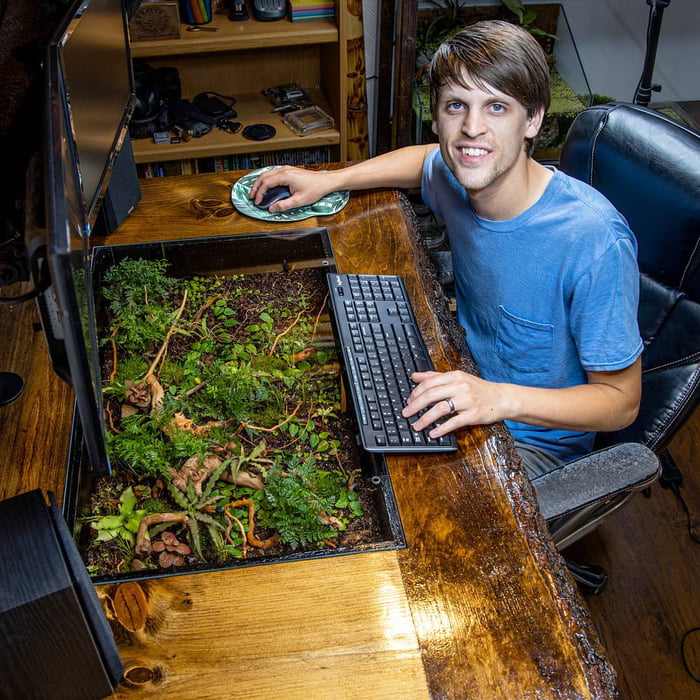 2020年08月18日在鋼筋水泥森林中,想要接近自然簡直是奢望,所以很多人把綠意搬進辦公室、搬進家中。這些年療癒的綠色植物超受歡迎,它們讓室內空間和大自然連結起來,讓人能夠紓壓放鬆。YouTube頻道「SerpaDesign」的主持人Tanner是一位自然藝術家,很擅長自然造景。最近他分享的一段影片中,直接把無聊的電腦桌變成了微型植物園~