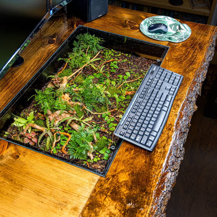 森林系傢俱! 他改造電腦桌成「微型植物園」 辦公也能享受療癒自然世界