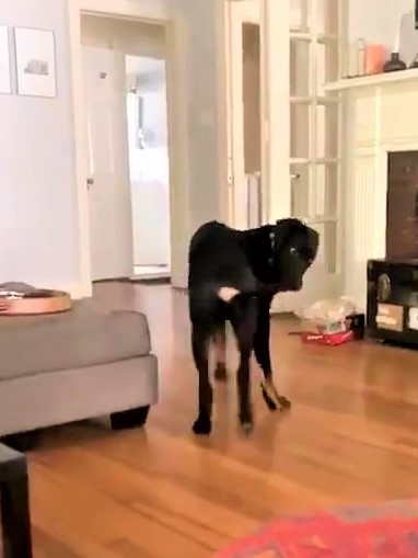 ▼幸福來得太突然,Max似乎沒想到自己能叼住尾巴。牠在原地定格,愣了5秒鐘,好不容易回神後竟然維持叼著尾巴的動作,牽著自己的尾巴默默離開了。主人看著牠奇怪的走路方式忍不住笑說:「這也太蠢了!」