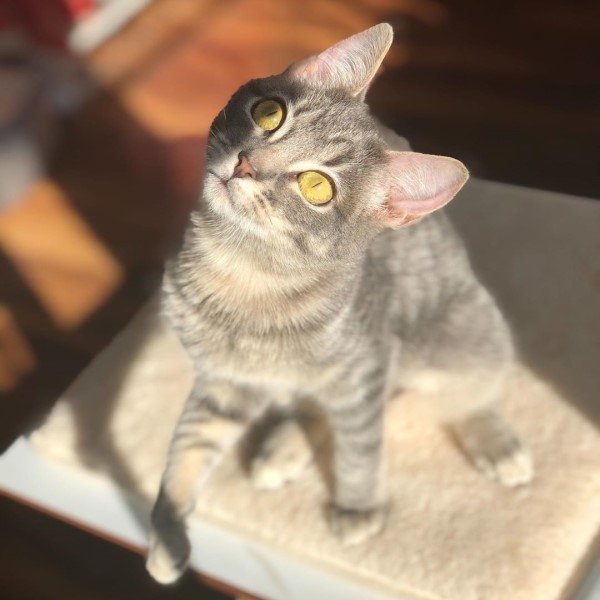 ▼這隻小虎斑貓叫Tortellini,牠的頭部會不自覺傾斜,平時需要特別照顧。牠在收容所時已經接受過藥物治療,身體有所好轉,但獸醫認為牠歪頭的情況不會改變了。Haley很憐惜這隻獨特的貓咪,於是主動將牠帶回家寄養。