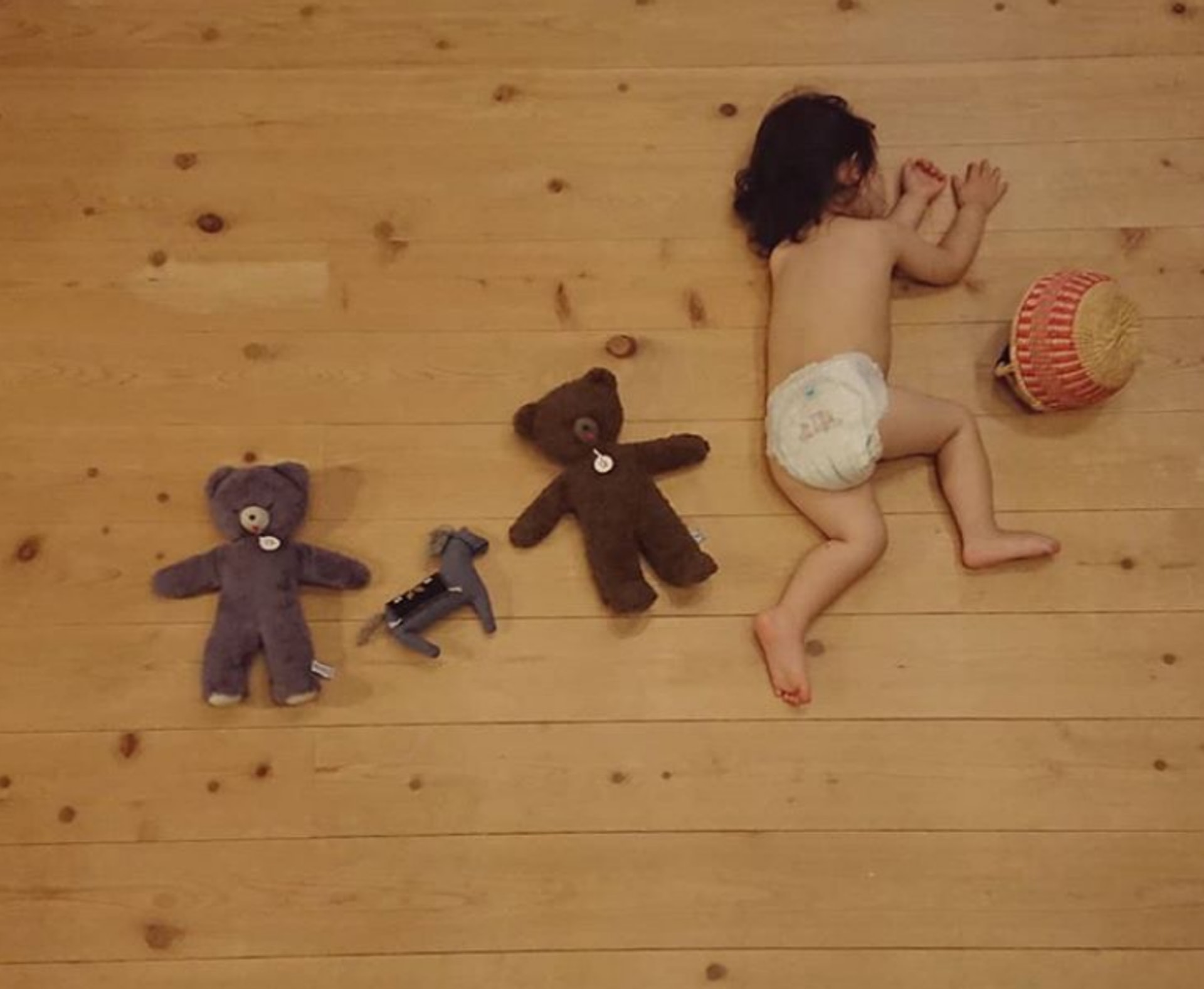 ▼姊姊最喜歡窩在沙發上睡覺,還要找來喜歡的玩偶作伴。後來妹妹出生,「睡神」這個稱號又成為了妹妹的專屬。她比姊姊還厲害,躺在地上就能呼呼大睡。