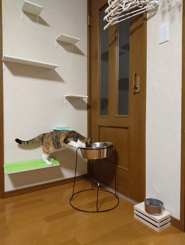 ▼推主根據兩隻毛孩的體型準備了不同的水碗,狗狗的大碗放得比較高,貓咪的小碗則比較低。沒想到朝日非要踮起腳腳,拉長身體站著去喝大碗裡的水。
