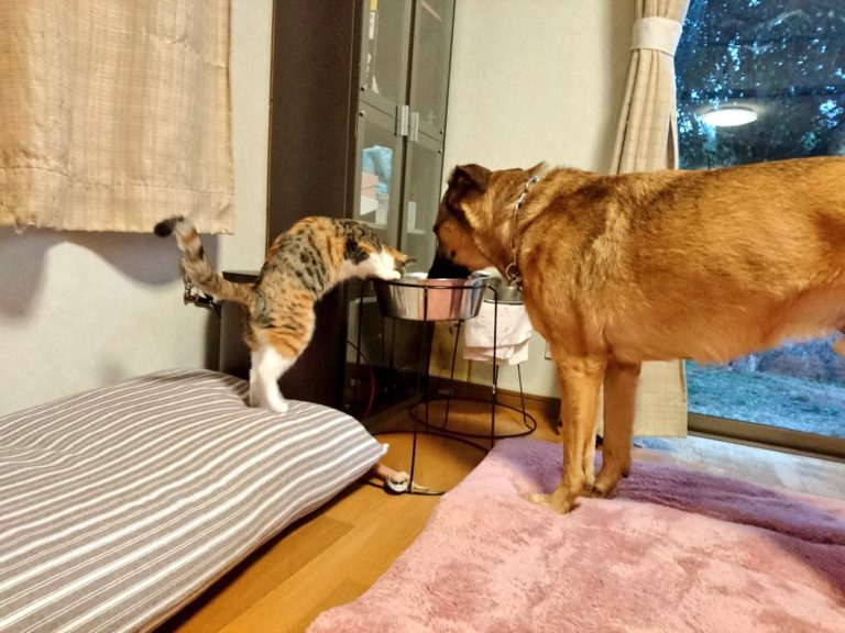 2020年08月22日別人碗裡的水比較好喝嗎?日本推主@Ayoster_classic養了一隻叫「宙斯ゼウス」的狗狗,還有一隻叫「朝日あさひ」的三花貓。兩個毛孩體型差很大,所以推主為牠們準備了一大一小兩個水碗。沒想到朝日不喝屬於自己的小碗,反而喜歡踮著腳腳去喝狗狗的大碗,那莫名的固執讓人忍不住笑翻~