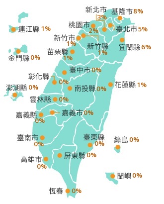 ▼至於未來全台各縣市受巴威颱風7級風風圈影響的機率,以基隆市8%為最高,其次則是宜蘭縣6%、台北市5%、新北市3%、桃園市2%。西部縣市則影響較小,新竹縣市、苗栗縣、花蓮縣、連江縣僅1%,其他縣市不受影響。