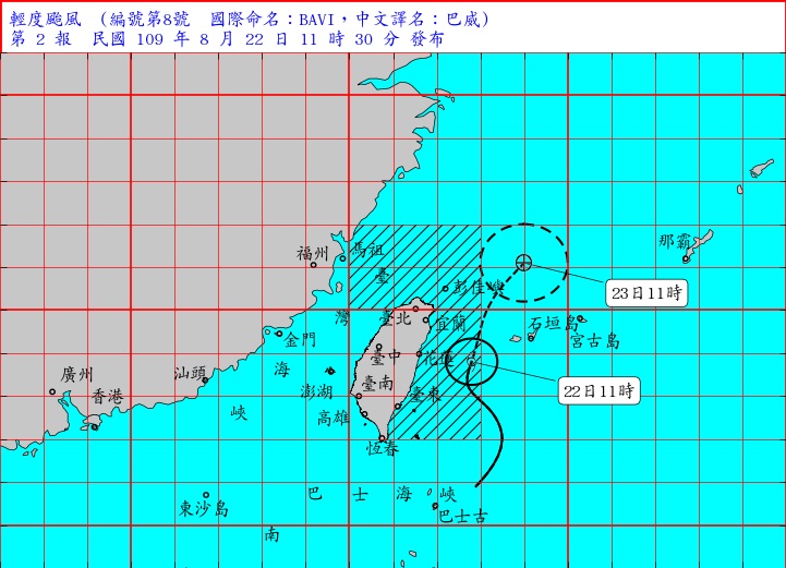 2020年08月22日今天上午(22日)第8號颱風「巴威」生成,住在東部、北部的民眾應該陸續都有感受到天氣的變化。根據氣象局資料顯示,今日會是巴威最接近台灣的時候,風圈預估明晨離開,但受到氣流影響,各地還是必須嚴加提防局部大雨的發生。