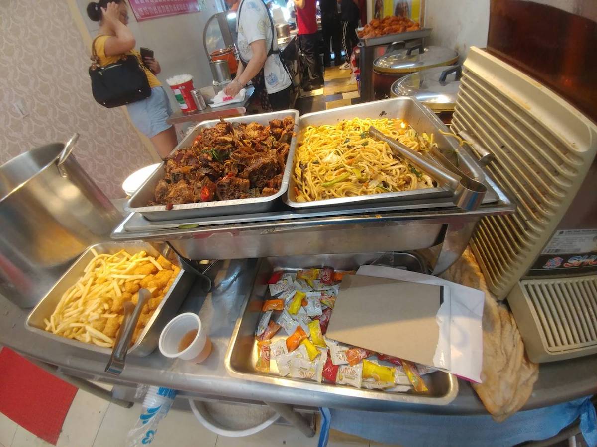 ▼原PO在臉書社團中分享了一間燒臘便當店,表示是「最佛心的燒臘店」,最便宜只要65元,內用就可以享用紅茶、薯條、甜湯、熱湯、炒麵、鴨脖子、馬鈴薯球和糖果,全部免費吃到飽,並分享了店內的照片,果真有紅茶、薯條、湯品等等數種餐點陳列,吸引了數百網友熱烈湧入留言好奇詢問地址究竟在哪。