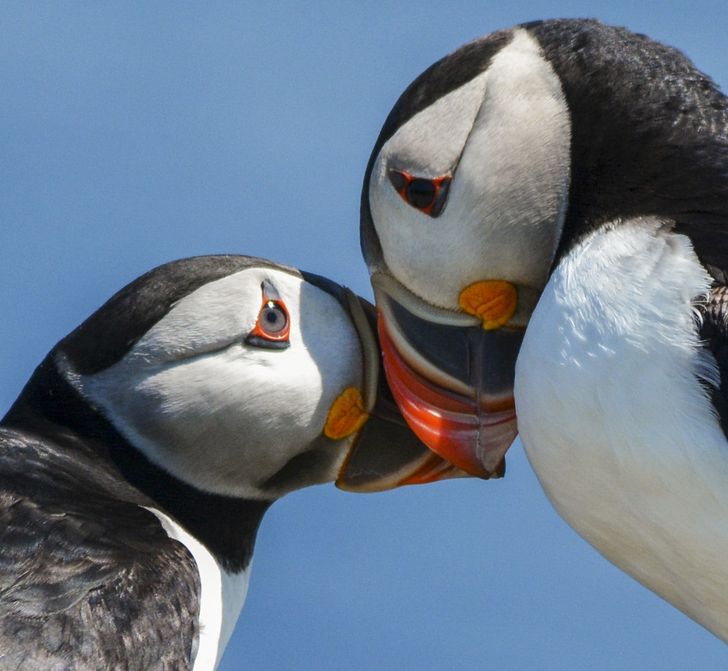▼6.北極海鸚:牠們會親密地互相磨蹭鳥喙,看起來就像在親親一樣。此外,牠們每年都會回到同一個地方,跟相愛的對象一起築巢、哺育後代,就好像訂下了終生不可違背之約,非常浪漫。