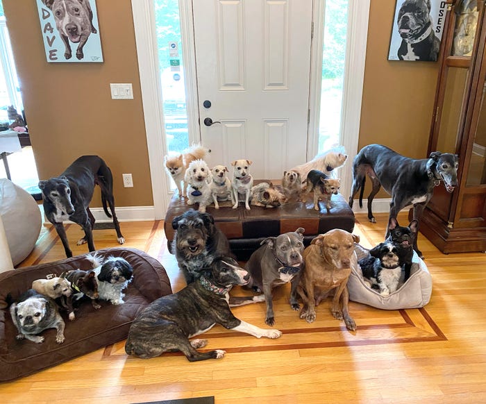 ▼Chris和Mariesa剛開始沒有想領養21隻老年狗狗,這是自然而然發生的。他們每天早上要花45分鐘給狗狗們餵食、喂藥。