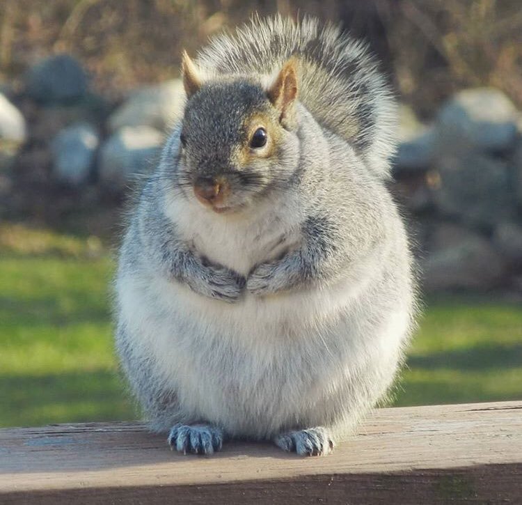 肥美松鼠群!不用阿嬤出動「自己狂吃」 三層肉都出來見客:根本龍貓吧!
