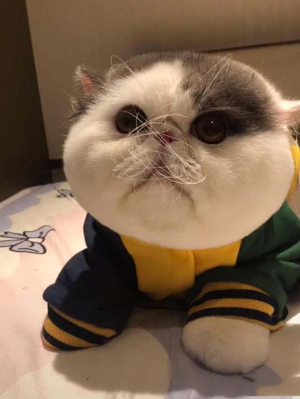 ▼這隻貓咪的頭非常大,修剪過毛毛後就像一個圓球,那呆萌的包子臉讓人心都要融化了。其他毛孩都是虛胖,牠如果沒有足夠的肉肉沒辦法撐起這麼有料的頭型吧。