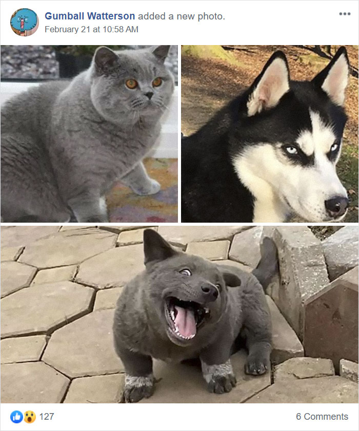 到底什麼生物?表情超有戲「貓貓狗」走紅網路 網笑翻:這灰貓混到哈士奇吧~