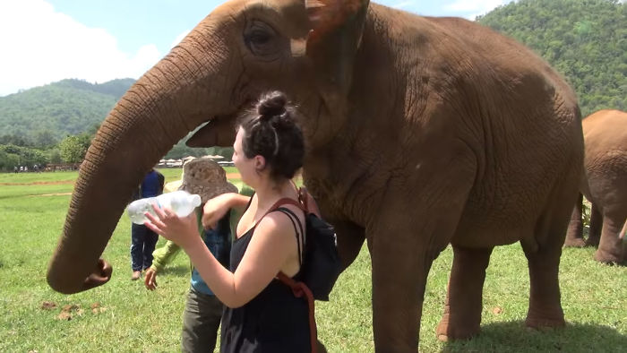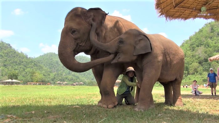2020年08月28日泰國清邁的「大象自然公園」(Elephant Nature Park)是一個專門救援、收容大象的庇護所。獲救後的大象來到這裡,有專業的飼育員照顧,跟飼育員之間的感情非常深厚。其中有一隻叫Faa Mai的母象就是由飼育員Lek Chailert照顧長大的,牠非常依賴Lek Chailert,還很愛對Lek Chailert撒嬌~