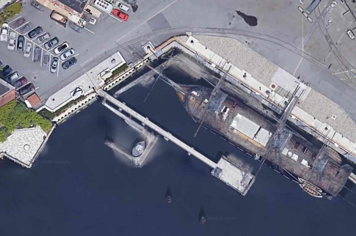 在Google Map的波斯頓港和憲法號帆船護衛艦博物館的空拍圖上,也能看得到它的俯視圖呢~小小一艘水滴型的身影超級可愛!